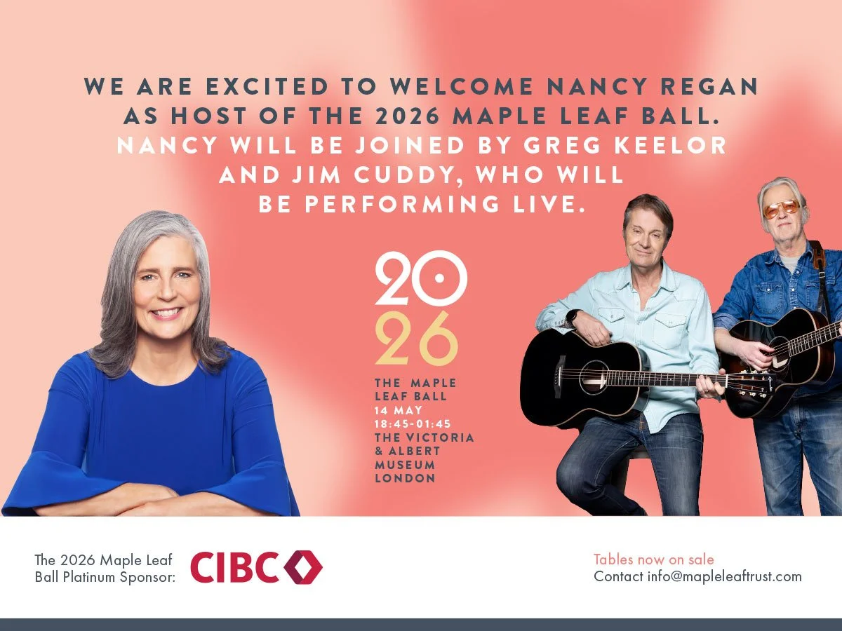 The 2026 Maple Leaf Ball will take place on 14 May 2026 at the Victoria and Albert Museum in London. The evening brings together leaders from business, philanthropy, culture, and public service for an elegant night of storytelling, connection, and celebration in support of these vital programmes.
